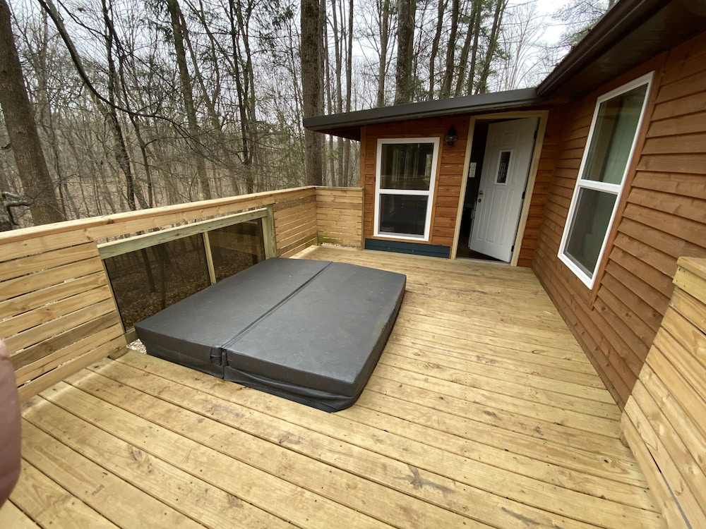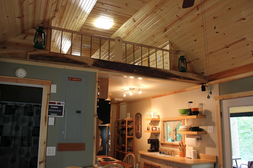 Burr oak cabin is nestled into the woods of burr oak state park.